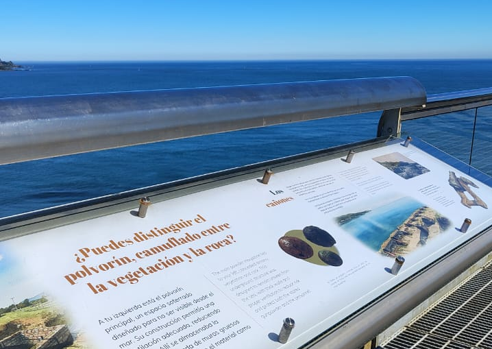 La intervención contempló la renovación de 13 paneles interpretativos, ubicados en puntos estratégicos del recorrido exterior de la fortificación. Estos paneles ofrecen contenidos contextualizados que articulan información histórica, visualización del territorio, aspectos constructivos del castillo y referencias a los usos sociales y culturales del sitio en distintos momentos de su historia. Su disposición responde a la secuencia natural de circulación de los visitantes, facilitando una comprensión progresiva e integrada del Castillo en sus dimensiones militar, social y paisajística. Los contenidos se complementan con un sistema de audioguías mediante códigos QR, que amplía la experiencia interpretativa.