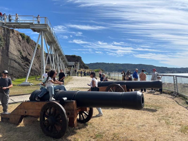 Como parte de esta renovación, se incorporaron dos réplicas de cañones orientadas hacia el sector norte del foso, concebidas como elementos de apoyo museográfico y realizado en Valdivia por el astillero Servinav. Durante décadas, la batería de cañones fue un espacio de cercanía y apropiación para generaciones de visitantes, quienes registraron su paso por el lugar a través de fotografías y recuerdos familiares. Sin embargo, debido a la erosión del terreno y a criterios de conservación, el acceso a esta área se encuentra restringido desde 2010.