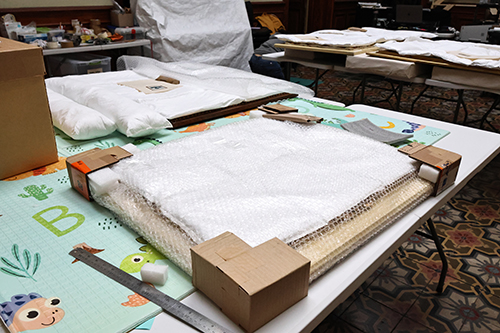 Fortaleciendo capacidades con talleres de sistemas de acondicionamiento El apoyo técnico del CNCR se ha enfocado en la fase más crítica: garantizar el traslado seguro de los bienes culturales. Durante este año, la asesoría se concretó en la implementación de un taller de sistemas de acondicionamiento y embalaje, clave para nivelar las competencias del equipo del museo y de otros funcionarios del Servicio Nacional del Patrimonio Cultural. "Cuando las colecciones patrimoniales deben trasladarse, ya sea de manera transitoria o definitiva, implica un momento crítico. Este proceso requiere una planificación meticulosa para asegurar la integridad física y contextual de los objetos de valor incalculable que se resguardan", señalan los especialistas, Natalia Naranjo y Bárbara Reyes. El taller, que dio continuidad a las recomendaciones entregadas en períodos anteriores, se desarrolló en dos viajes al museo, iniciando el 28 y 29 de octubre y finalizando el 2 y 3 de diciembre. Las tutoras a cargo de la actividad fueron Cristina Furrianca, encargada de Colecciones del MRM, Natalia Naranjo M., coordinadora de la Unidad de Patrimonio Construido y Escultórico (UPCE) y Bárbara Reyes, profesional de Apoyo de la Unidad de Patrimonio Arqueológico y Etnográfico (UPAE), ambas del CNCR. El programa incluyó: Acondicionamiento de obras bidimensionales: pinturas de caballete, fotografías y grabados enmarcados. Conocimientos teóricos y prácticos: embalajes para objetos tridimensionales de pequeño tamaño. Preparación de espacios y apoyo directo en el embalaje, traslado y resguardo.