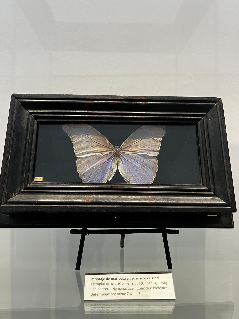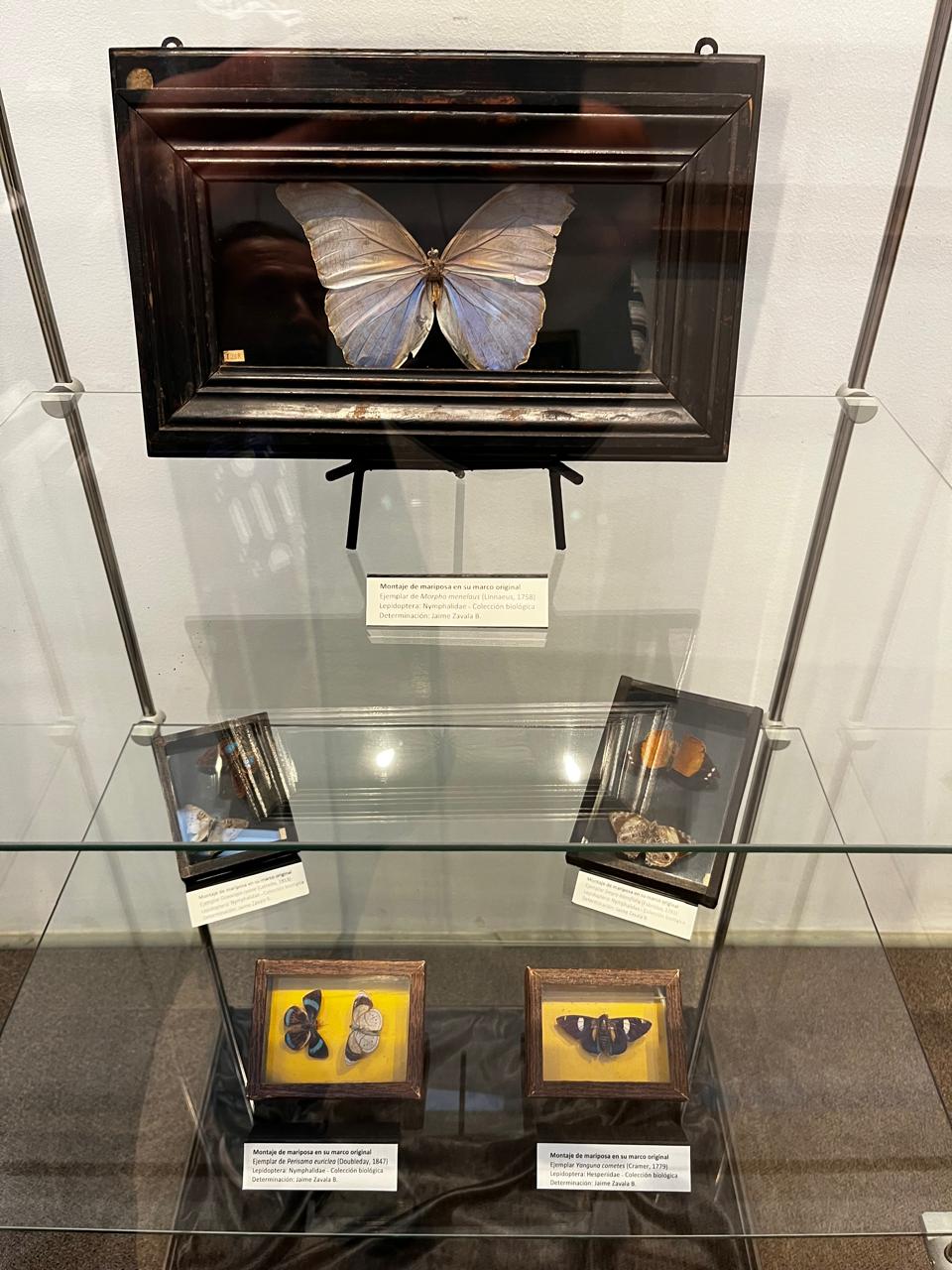 En el costado derecho, la vitrina dedicada a las mariposas simboliza el tercer pilar de las colecciones: las colecciones biológicas. Reúne ejemplares que se presume provienen de donaciones realizadas en el mismo contexto histórico de reconstrucción. Desde una mirada simbólica, estas mariposas evocan la transformación y la capacidad de volver a desplegar las alas después de la adversidad.
