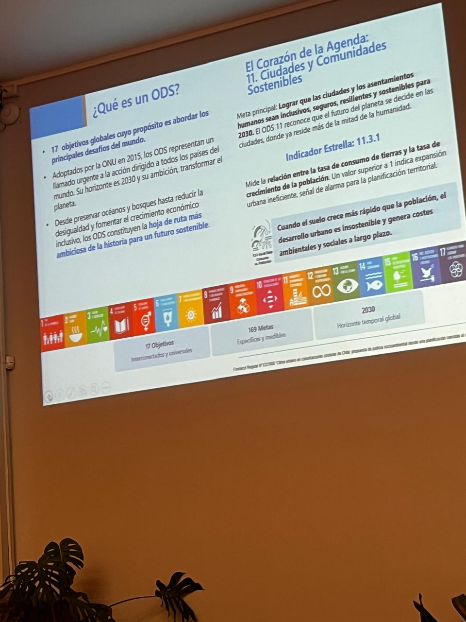 El programa de presentaciones incluyó la exposición del Dr. Pablo Sarricolea, quien abordó el clima urbano en ciudades costeras; la académica Paulina Vidal, quien presentó sobre la observación de la Tierra aplicada al monitoreo del Objetivo de Desarrollo Sostenible ODS 11.3.1; y el académico Oliver Meseguer-Ruiz, quien expuso sobre la vulnerabilidad al calor urbano, con énfasis en los casos de Iquique y Arica. Asimismo, los investigadores Felipe Thomas y Pamela Smith presentaron sobre refugios climáticos y estaciones urbanas, relevando su importancia en contextos de cambio climático.