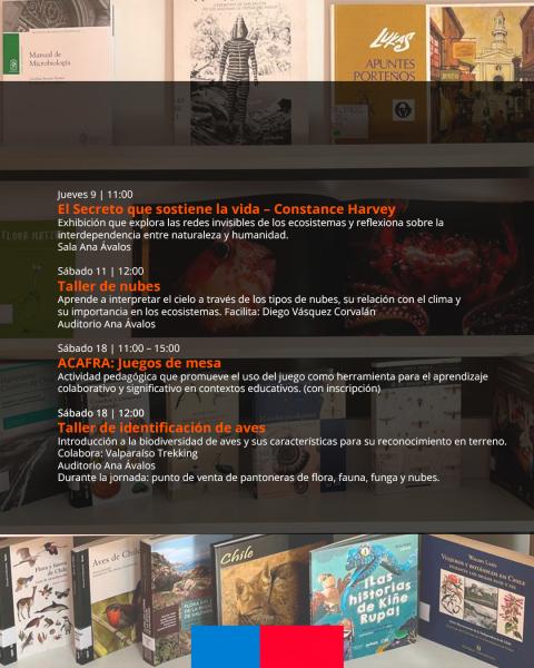El sábado 18 se concentrará una nutrida jornada de actividades. Durante la mañana se desarrollará ACAFRA Juegos de mesa, iniciativa con inscripción previa que pone en valor el juego como herramienta pedagógica para el aprendizaje colaborativo. Ese mismo día, al mediodía, tendrá lugar el Taller de identificación de aves, orientado a conocer la biodiversidad de especies presentes en el territorio y sus principales características. Por la tarde, en el marco del Día Mundial del Circo, se llevará a cabo el lanzamiento de la revista “Chita la Payasá”, publicación dedicada al circo tradicional chileno que incluye investigaciones, entrevistas y contenidos especializados.