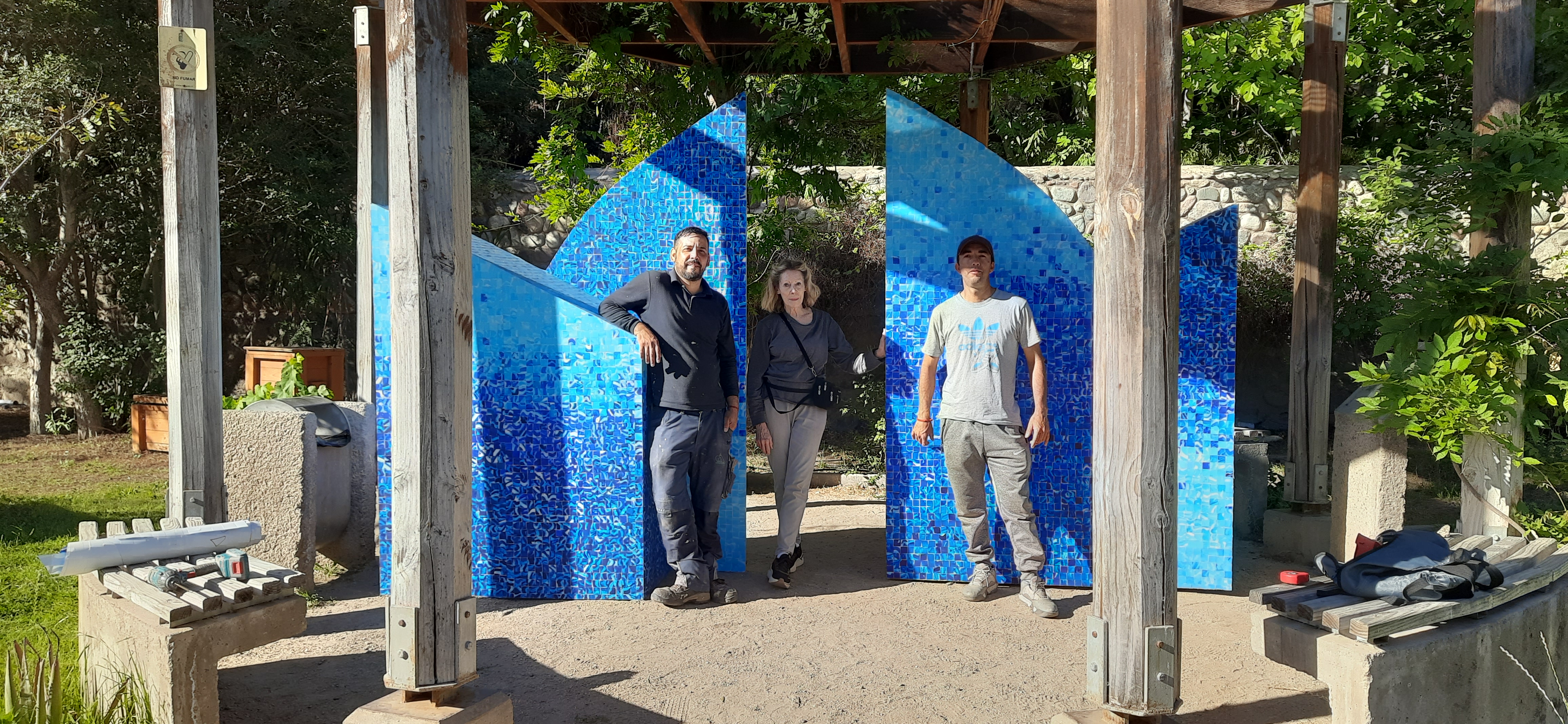 El recorrido intramuros se extiende hacia el exterior con la instalación de la obra Seeds and Stars, de la artista estadounidense Barbara Crawford, actualmente emplazada en la pérgola del Jardín Poético del museo. La pieza, compuesta por cuatro elementos escultóricos, forma parte de una serie internacional dedicada a bancos de semillas y a la preservación de la biodiversidad vegetal. Tras una instalación inicial frente al Banco de Semillas del INIA en Vicuña, la obra fue trasladada al museo como parte de la conmemoración del Nobel, estableciendo un cruce entre arte, ciencia y territorio que dialoga con preocupaciones contemporáneas como el cambio climático y la conservación del patrimonio natural.